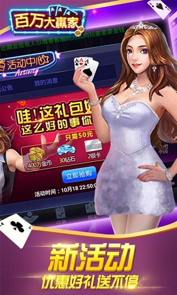 百万大赢家是比较不错的一款棋牌娱乐类的手游。相信玩过百万大赢家的玩家,都会觉得这款游戏非常不错。目前的版本是最新版,解决了不少的游戏bug,让游戏可以更稳定运行。为什么选百万大赢家这款游戏?因为它注重用户的体验。