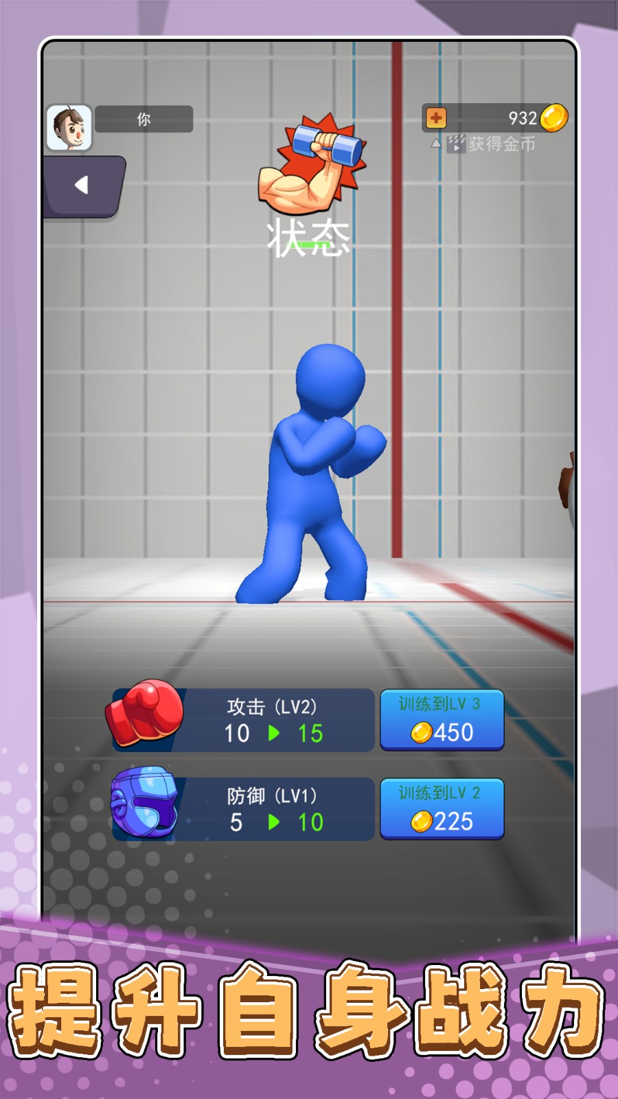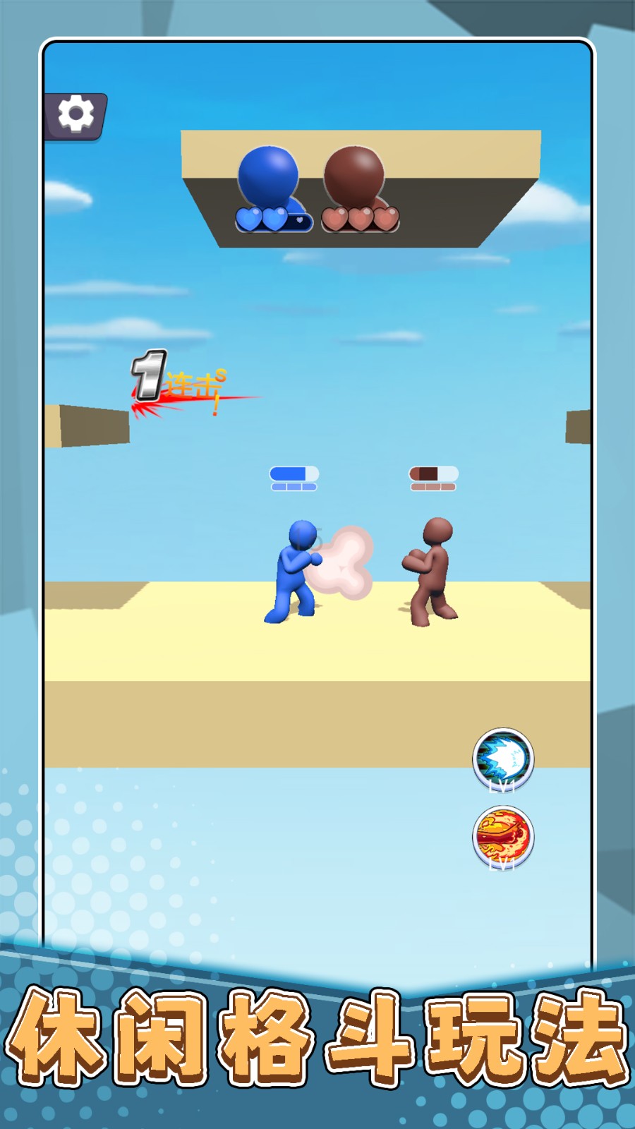 1、投身史诗级快节奏火柴人格斗,拖动角色灵活出拳踢腿,胜负全靠反应与策略,每一场战斗都超刺激。