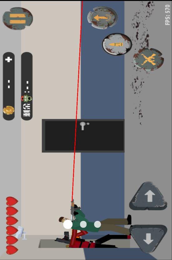4、操控着主角拿起射线机关枪,移动射线的位置,精准的瞄准僵尸,快速的射击,获得胜利。