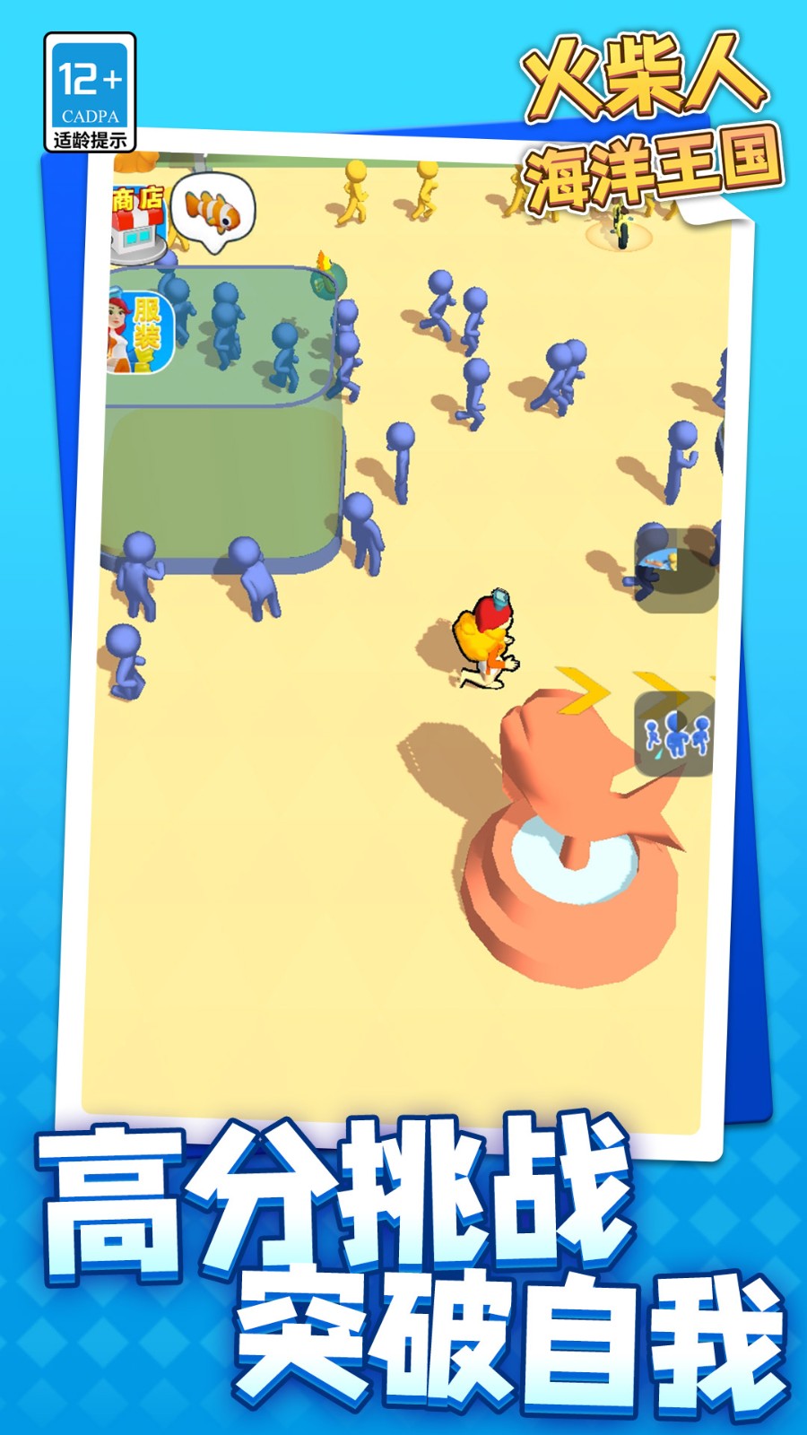 1、玩家操控火柴人开启海底冒险,在珊瑚礁、深海峡谷等场景自由探索,靠近海洋生物即可收集,组建专属生物阵容。