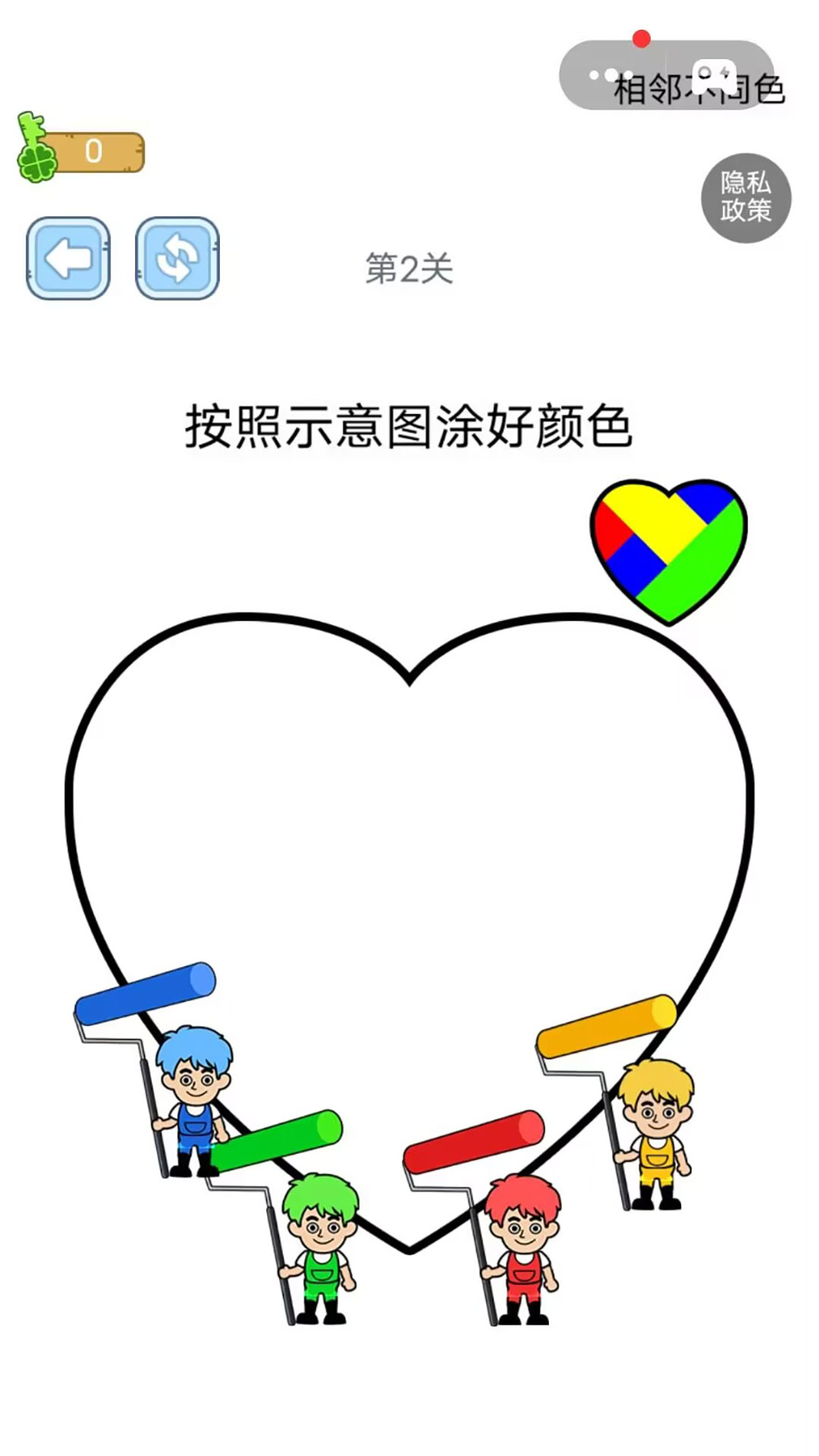 2、设置难度递进关卡,从简单的单一图案涂色,到复杂的多图案联动涂色,不断提升推理挑战。