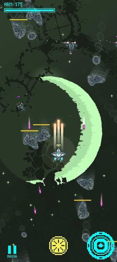 控制像素平面在关卡中飞行,曲折崎岖的关卡地形可供玩家挑战;