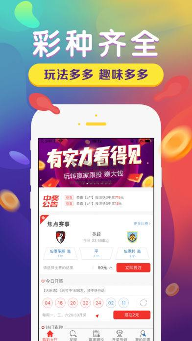 3、让你想买的彩种都可以在这找到,得到更多的数据有助于你进行购彩的,提供走势和玩彩资讯一手掌握,动动手指即可来参与到红包抽取活动中。